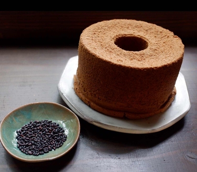 石垣島白保産の黒紫米(2025年の新米です)で焼き上げた自慢のシフォンケーキ。(グルテンフリー)